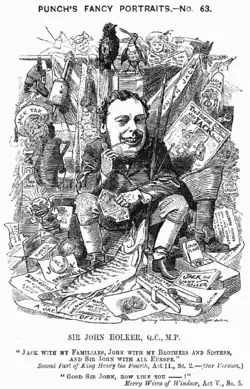 John Holker (1828 - ) est un avocat et homme politique britannique. Il est député pour Preston de 1872 jusqu'à sa mort dix ans plus tard. Il est solliciteur général puis procureur général dans le deuxième gouvernement de Benjamin Disraeli.