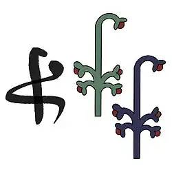 Il représente un plant de l'espèce swt, un genre de jonc, de souchet, de scirpe, de laîche, de carex ou autre de la famille des cypéracées (hiéroglyphe M23) en fleur poussant ou non sur un signe analogue à N17 représentant la terre. Originellement vert comme M23, il devient rapidement bleu pour s'en différencier. C'est un symbole de la Haute-Égypte. Il est translittéré šmˁ ou šmˁw.