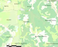 - ↑ « Orthodromie entre Jonchères et Bellegarde-en-Diois », sur fr.distance.to (consulté le ).