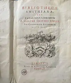 Il joint au goût des arts celui de la littérature. Il a formé une collection précieuse des premières éditions des auteurs classiques. On en a le catalogue sous le titre de Bibliotheca Smithiana, Venise, 1754, in-4°. Ce volume lui-même est très recherché.