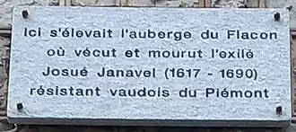 - ↑ François Peyrot, Les Vaudois : récit d’une persécution : Seconde partie : La Glorieuse Rentrée, Lausanne, L’Âge d’Homme, (ISBN 9782825126790), p. 157 (Épilogue).