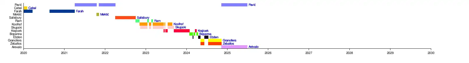 | # | Joueur | Début | Fin | Semaines | Cumul |