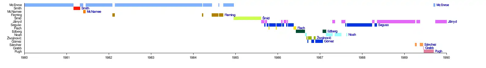 Par ailleurs, John McEnroe a été numéro 1 en fin d'année concomitamment en simple et en double, et cela à trois reprises : en 1981, 1982 et 1983.