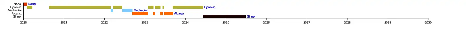 Le , Rafael Nadal est devenu le premier joueur de l'histoire à occuper la place de no 1 sur trois décennies : les années 2000, les années 2010 et les années 2020.