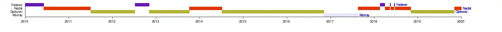 - celui du joueur ayant été numero no 1 mondial le plus d’années différentes. (13 au total, entre 2011-2016 et 2018-2024)