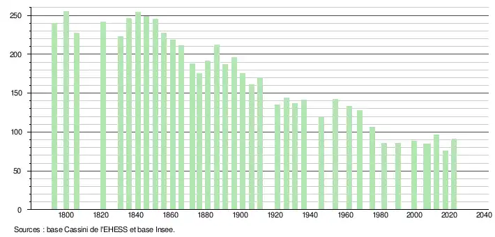 - ↑ Population municipale de référence en vigueur au 1er janvier 2025, millésimée 2022, définie dans les limites territoriales en vigueur au 1er janvier 2024, date de référence statistique : 1er janvier 2022.