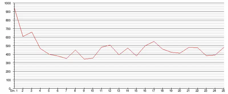 Évolution de l'audience du premier mois de diffusion, par émission en France (en milliers de téléspectateurs)