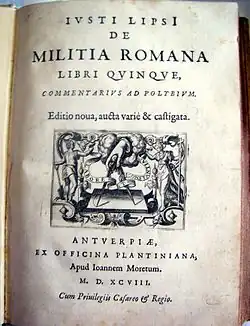 - ↑ (en) Justus Lipsius, De militia romana : libri V : commentarius ad Polybium, , 372 p. (lire en ligne).