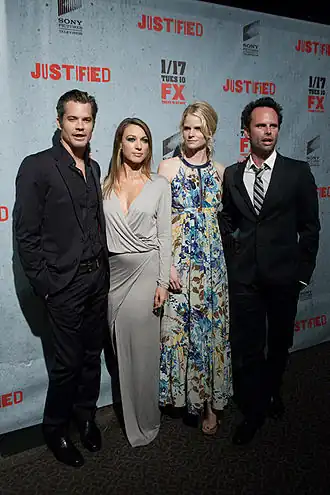 Elmore Leonard Graham Yost (en) Fred Golan Michael Dinner Sarah Timberman Carl Beverly Dave Andron Don Kurt Timothy Olyphant Taylor Elmore Benjamin Cavell Chris Provenzano |