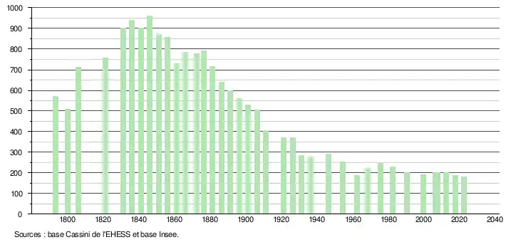 181 hab. (2022 en évolution de −6,22 % par rapport à 2016)
