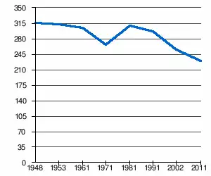 - 1 2 (sr + en) « Livre 20 : Vue d'ensemble comparative de la population en 1948, 1953, 1961, 1971, 1981, 1991, 2002 et 2011, données par localités) » [PDF], pages du recensement de 2011 en Serbie - Institut de statistique de la république de Serbie, (consulté le )