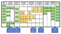 Dans le cadre du développement logiciel, kanban peut être un système visuel de gestion des processus qui indique quoi produire, quand le produire et en quelle quantité ; cette approche est directement inspirée du système de production de Toyota et des méthodes lean (voir l'article homonyme : kanban).