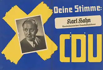 Hahn devient membre de la CDU en 1945. Initialement président du district de Westphalie orientale/Lippe, il devient ensuite vice-président de l'État de Westphalie.