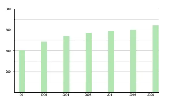 Le recensement de 2011 y dénombre 586 habitants, soit 3 % de plus qu'en 2006[8],[9].