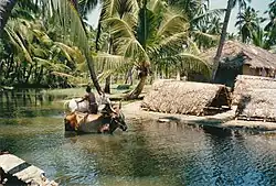 Une maison au bord d'un canal, sur Munroe Island. La population est concentrée le long du littoral.