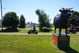 Une statue de bœuf se dresse face à la rue Main, représentant l'événement de barbecue de bœuf organisé chaque année sur la place de la ville.