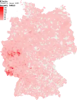 - Répartition par départements (France, 1891-1990) du patronyme « KLEIN » fournie par l’Insee et présentée par le site Filae (anciennement Géopatronyme)