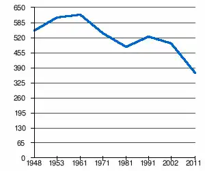 | 553 | 610 | 622 | 542 | 481 | 523 | 496[2] | 368[1] |