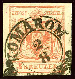 Oblitération hongroise sur un timbre impérial K. & K. en allemand.