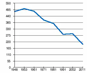 - 1 2 (sr + en) « Livre 20 : Vue d'ensemble comparative de la population en 1948, 1953, 1961, 1971, 1981, 1991, 2002 et 2011, données par localités) » [PDF], pages du recensement de 2011 en Serbie - Institut de statistique de la république de Serbie, (consulté le )