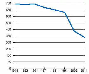 | 741 | 738 | 741 | 705 | 673 | 647 | 429[2] | 357[1] |