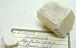 La kurnakovite est une espèce minérale du groupe des borates et du sous-groupe des soroborates, de formule MgB3O3(OH)5·5H2O.