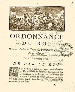 - ↑ Ordonnance royale du 1er septembre 1778 (SHD)