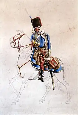 - 2 escadrons de hussards, chacun d'une compagnie de 52 cavaliers et de 3 officiers