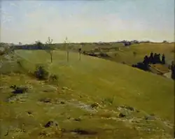 Un tel article fait écho à des avis critiques formulés longtemps auparavant. C’est ainsi que L. de Neuville avait évoqué, en 1891, « cette peinture grise, blanche, brumeuse et diaphane », cette couleur où « toute la gamme [se] retrouve » et où « le dessin s’affirme avec un relief inconcevable »[29]. À la même époque, Édouard Rod avait reconnu aux toiles de Jarraud « leurs nuances finement arrangées, leurs demi-teintes, la douceur caressante de leurs tons »[30]. Bien sûr, certains, comme Henri Mallié, tireront parti de ces brumes propres à un terroir et à une vision toute personnelle pour qualifier, péjorativement, les toiles de Jarraud de « brouillardeuses »... Régina Jarraud y voit plutôt une parenté avec certaines évocations de Jacques Chardonne dans Le Bonheur de Barbezieux[31].