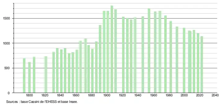 - ↑ Fiches Insee - Populations de référence de la commune pour les années 2006, 2007, 2008, 2009, 2010, 2011, 2012, 2013, 2014, 2015, 2016, 2017, 2018, 2019, 2020, 2021 et 2022.