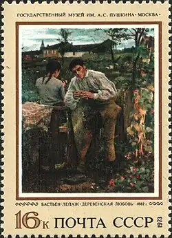 - ↑ (ru) « Jules Bastien-Lepage. L'Amour au village, 1882 » [html], sur Musée des Beaux-Arts Pouchkine — www.newpaintart.ru (consulté le ).