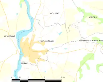 - ↑ « Orthodromie entre L'Isle-Jourdain et Le Vigeant », sur fr.distance.to (consulté le ).