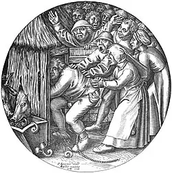 En 1568, Jan Wierix réalise une gravure d'après l’œuvre de Bruegel. Il y ajoute son monogramme (IHW), la date ainsi que l'indication P. Brueghel inuet[3]. La composition de Bruegel ne sera longtemps connue que par cette estampe, qui a fait l'objet de plusieurs éditions (notamment par Visscher), et par des copies issues de l'atelier ou de l'entourage de Pieter Brueghel le Jeune. L'une d'elles, réalisée après 1616, est aujourd'hui conservée au musée de Bamberg.