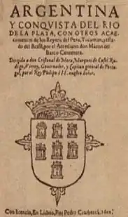 Page de garde de la première édition du poème La Argentina de Martín del Barco Centenera, 1602