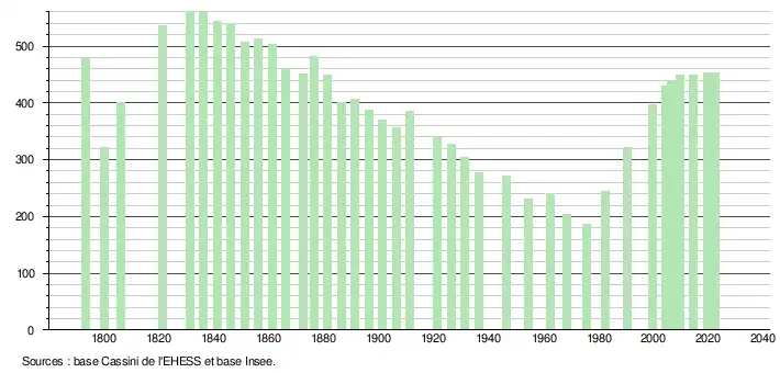 - ↑ Fiches Insee - Populations de référence de la commune pour les années 2006, 2007, 2008, 2009, 2010, 2011, 2012, 2013, 2014, 2015, 2016, 2017, 2018, 2019, 2020, 2021 et 2022.