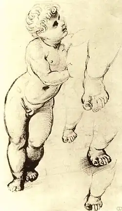 Certains détails comme le petit pied de l'Enfant Jésus posé sur celui de sa mère rappellent Michel-Ange. En effet, celui-ci est représenté ainsi dans la statue de la Madone de Bruges.