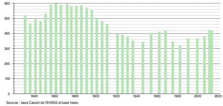 (Sources : Ldh/EHESS/Cassini jusqu'en 1999[5] puis Insee à partir de 2006[19].)