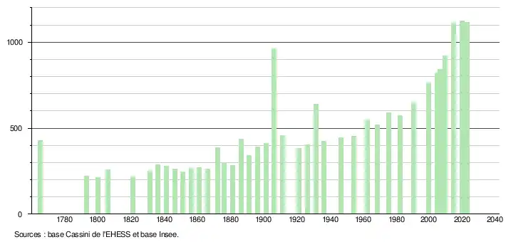 - ↑ Fiches Insee - Populations de référence de la commune pour les années 2006, 2007, 2008, 2009, 2010, 2011, 2012, 2013, 2014, 2015, 2016, 2017, 2018, 2019, 2020, 2021 et 2022.