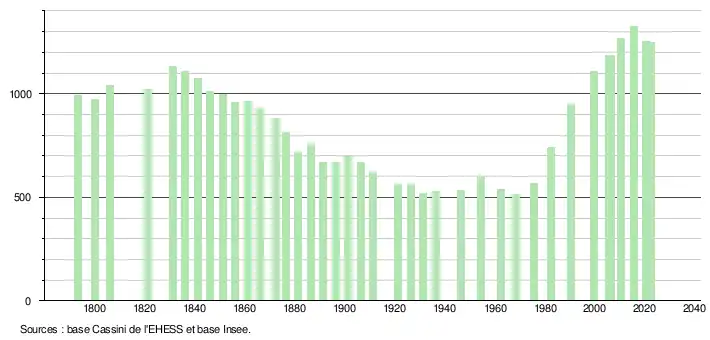 - ↑ Fiches Insee - Populations de référence de la commune pour les années 2006, 2007, 2008, 2009, 2010, 2011, 2012, 2013, 2014, 2015, 2016, 2017, 2018, 2019, 2020, 2021 et 2022.
