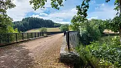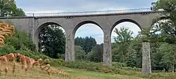 Viaduc de La Cellette[27], de l'ancienne ligne ferroviaire Montluçon - Gouttières : 122 m de longueur - 21 m de hauteur, et composé de 8 arches de 10 m