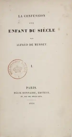 - ↑ Encyclopædia Universalis, « LA CONFESSION D'UN ENFANT DU SIÈCLE », sur Encyclopædia Universalis (consulté le )