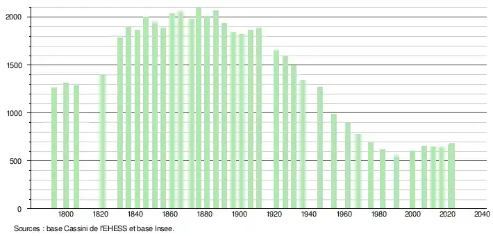- ↑ Fiches Insee - Populations de référence de la commune pour les années 2006, 2007, 2008, 2009, 2010, 2011, 2012, 2013, 2014, 2015, 2016, 2017, 2018, 2019, 2020, 2021 et 2022.