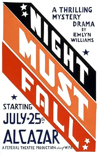 Poster de Night Must Fall au théâtre Alcazar à San Francisco.