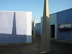 Les Solstices est un ensemble de deux bâtiments courbes qui flanquent une place ovale herbeuse où se dresse un obélisque et où deux longs bancs courbes dessinent le tracé de la course du soleil aux solstices[14].