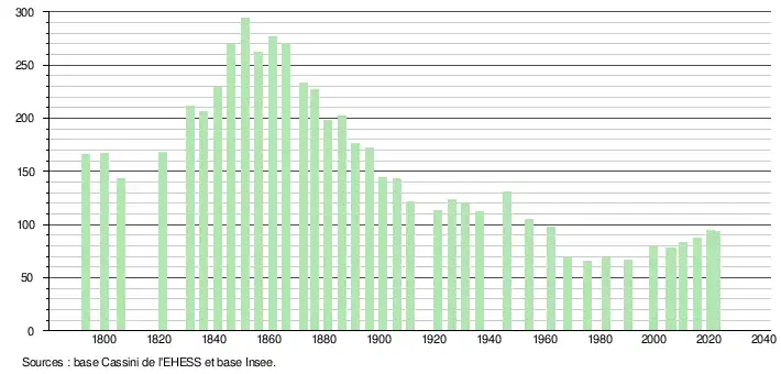 - ↑ Population municipale de référence en vigueur au 1er janvier 2025, millésimée 2022, définie dans les limites territoriales en vigueur au 1er janvier 2024, date de référence statistique : 1er janvier 2022.