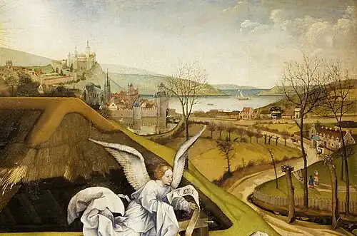 Dans ces œuvres, Campin n'utilise pas souvent la nature comme toile de fond, mais il se révèle à travers ce tableau être également un peintre de paysages de qualité, qui était en mesure de recueillir non seulement les détails, mais les subtilités de l'atmosphère et la lumière[16]