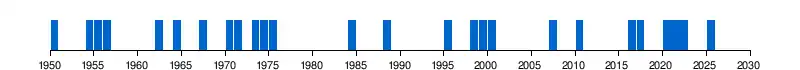 Pour la période débutant en 1950, la Terre a connu de nombreux épisodes de la Niña, le dernier encore en cours débutant en [6],[7].