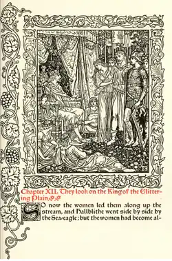 Première page de La Plaine étincelante dans la réédition de 1894 illustrée par Walter Crane. | |