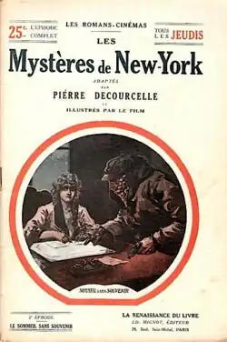 - ↑ Pierre Decourcelle, Les Mystères de New-York - 1er épisode : la main qui étreint, Paris, La Renaissance du livre, , 25 p., p. 25.