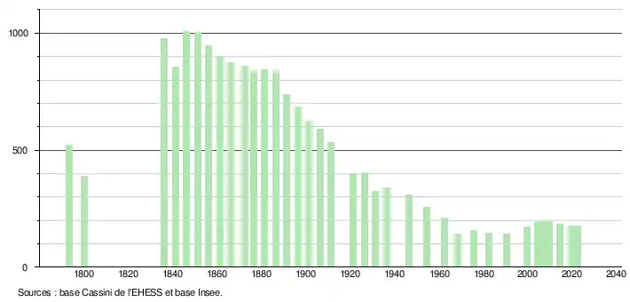 - ↑ Fiches Insee - Populations de référence de la commune pour les années 2006, 2007, 2008, 2009, 2010, 2011, 2012, 2013, 2014, 2015, 2016, 2017, 2018, 2019, 2020, 2021 et 2022.